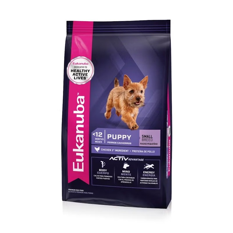 Eukanuba Puppy Small Breed es un alimento balanceado completo para cachorros entre 1 y 12 meses de edad y de razas pequeñas como Caniche, Yorkshire Terrier, Chihuahua, Daschund, Maltes y otras razas o perros mestizos que en su etapa adulta pesen menos de 10 kg.