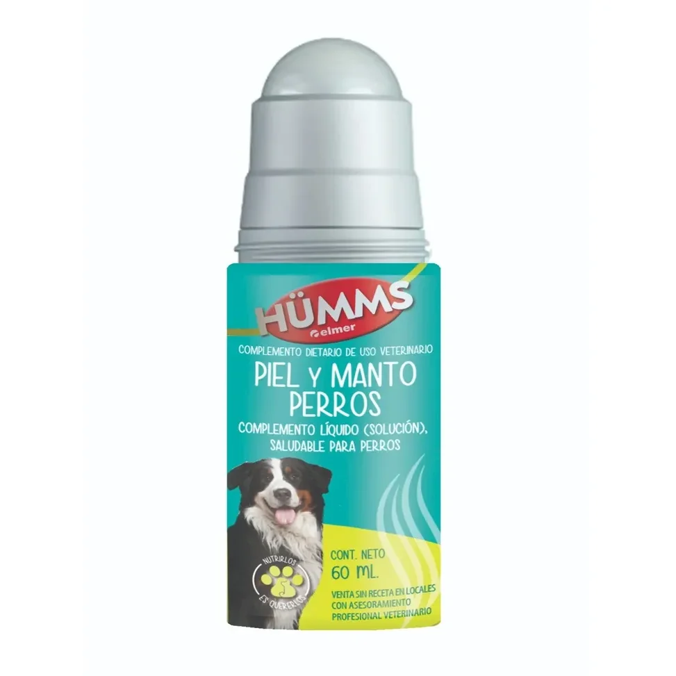 Hümms Elmer Piel y Manto Perros, está indicado como complemento dietario para gatos. Es una combinación de ingredientes que ayuda a mejorar el estado y la piel de los perros